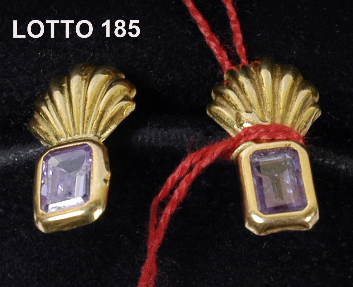 COPPIA DI ORECCHINI GRAMMI 1,95 RAFF. CAPESANTE CON AMETISTE IN ORO 750 % GRAMMI 1,30 CA.