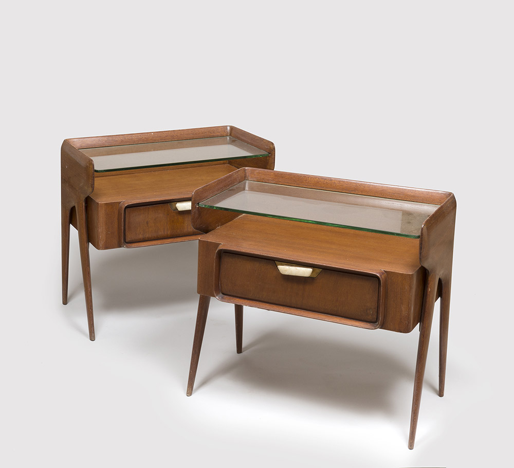 COPPIA COMODINI , impiallacciati in mogano, Struttura portante a scocca con...