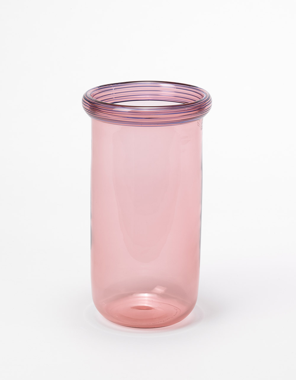 Lino Tagliapietra (1934) Vaso in vetro trasparente rosa, con bordo a incalmo...