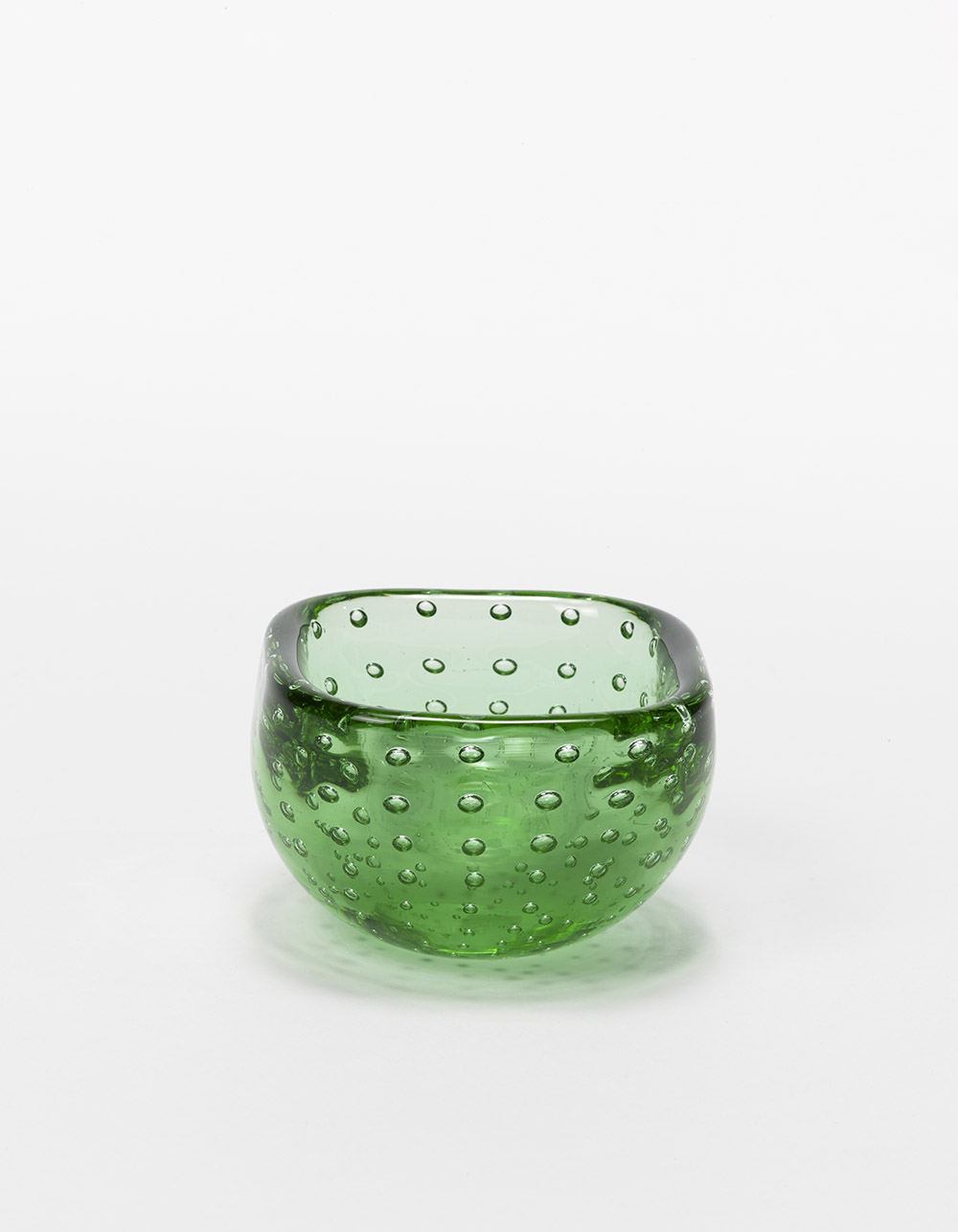 Venini, Murano Piccola ciotola in vetro "bulicante" verde. Firmata all'acido "venini murano ITALIA" (cm 7x5) Little bowl in "bulicante" green glass. Acid signed "venini murano ITALIA" (cm 7x5)
