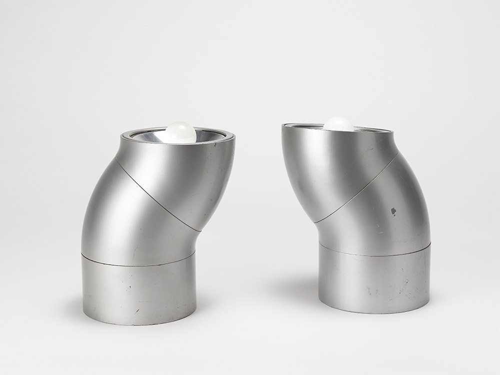 Carla Venosta (1926 ) Coppia di lampade da tavolo Modello "C 160 87 gradi 30 primi". Materiale plastico verniciato grigio (cm 16x27x16) (difetti) Couple of table lamps model "C 160 87 gradi 30 primi". Grey varnished plastic material (cm 16x27x16) (defects)