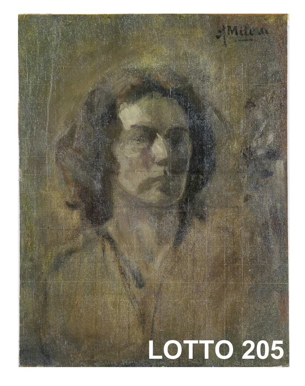 ALESSANDRO MILESI (1856 - 1945) DIPINTO OLIO SU TELA APPLICATA SU TAVOLA RAFF. RITRATTO DI DONNA MIS. 45 X 60