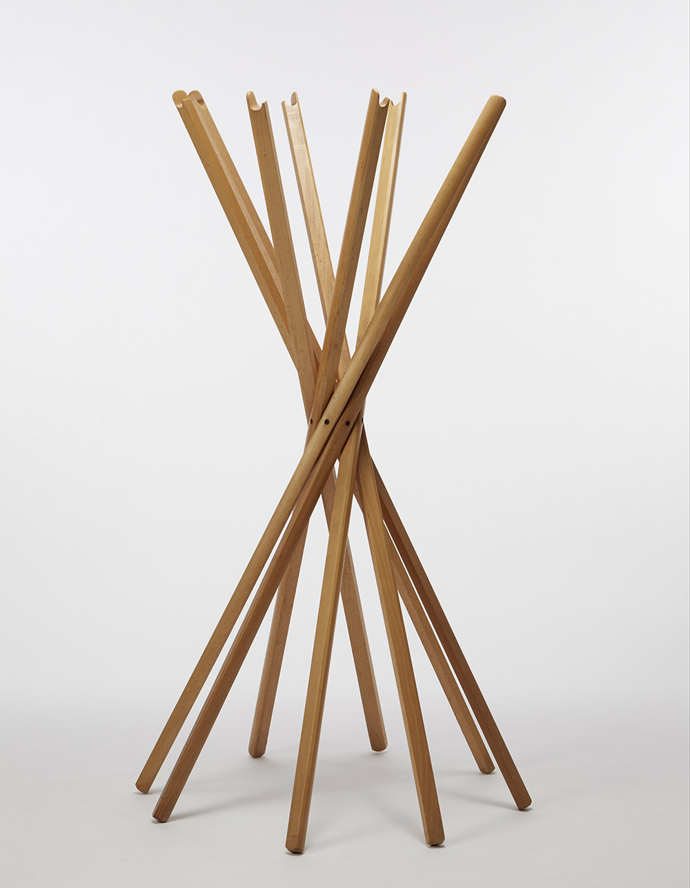 Jonathan De Pas (Milano 1932 - 1991), Donato D'Urbino (Milano 1935), Paolo Lomazzi (Milano 1936) Appendiabiti modello "Sciangai". Produzione Zanotta, Milano 1973. Legno di faggio naturale verniciato. Vincitore del premio Compasso d'oro del 1979 (cm 65x146x65) (lievi difetti) Bibliografia: G. Gramigna, Le fabbriche del design. I produttori dell'arredamento domestico in Italia, Allemandi, Torino 2007, p. 242 Coat hanger model "Sciangai". Produced by Zanotta, Milan 1973. Varnished beech wood. Compasso d'oro 1979 Prize winner (cm 65x146x65) (minor defects)