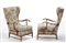 Paolo Buffa (Milano 1903 - 1970) Coppia di bergere in legno di mogano, rivestite in tessuto beige damascato. Italia, anni 40 (cm 69x100x78) (difetti al tessuto) Couple of mahogany bergeres, damask fabric lining. Italy, 1940s (cm 69x100x78) (defects)