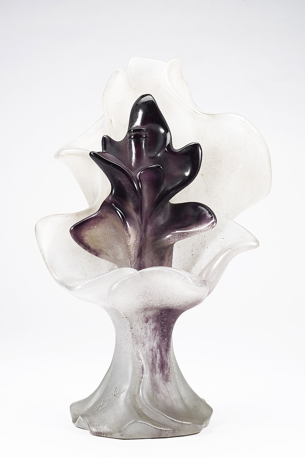 Salvador Dalì (Figueres 1904 - 1989) Scultura in pasta vitrea opalescente e color ametista. Manifattura Daum, Francia. Firmata a stampo (h cm 46) Vitreous paste sculpture. Manufactured by Doum, France. Signed (h cm 46)