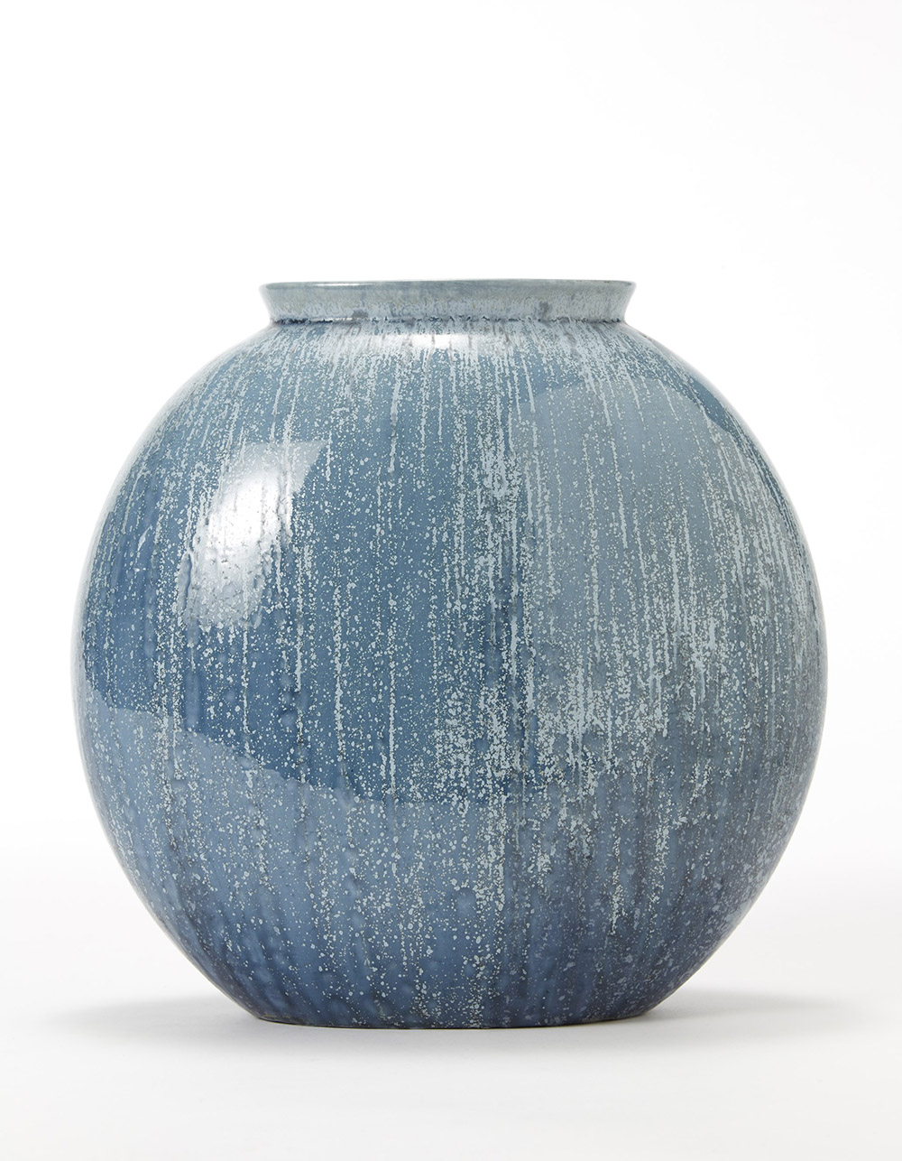 Guido Andlovitz ( 1900 - 1965) Vaso modello "1316". Società Ceramica Italiana - Lavenia, Laveno 1936 ca. Terraglia forte formata a colaggio, decorato a smalto "sgocciolato" in celeste e blu. Marcato in verde sotto la base con il monogramma "Lavenia" e con i numerali "9-53" (h cm 31) Bibliografia: Il decoro in tavola. forme e colori di Guido Andloviz, a cura di A. Pansera e M. Chirico, Allemandi, Torino 2011, p. 110 Vase, model "1316". Società Ceramica Italiana - Lavenia, Laveno, circa 1936. Molded casting earthenware. Marked with the green monogram "Lavenia" and "9-53" numbers (h cm 31) Bibliography: Il decoro in tavola. forme e colori di Guido Andloviz, a cura di A. Pansera e M. Chirico, Allemandi, Torino 2011, p. 110