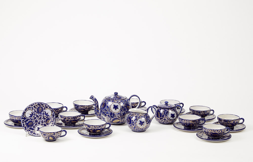 Manifattura Zoli, Faenza Servizio da tè dipinto a mano, in blu cobalto e oro...