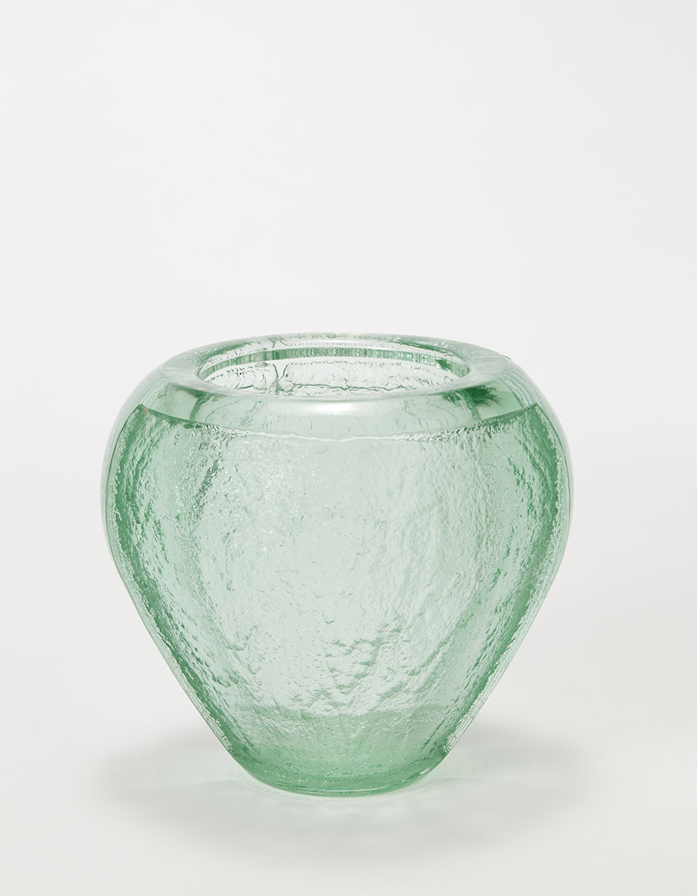 Daum, Nancy Vaso in vetro tasparente verdino pressato in stampo, fortemente corroso all'acido sulla superficie esterna. Prima metà del sec XX. Firmato a punta "DAUM NANCY FRANCE" (h cm 16) Clear glass vase. Fisrt half of the 20th century. Signed "DAUM NANCY FRANCE"
