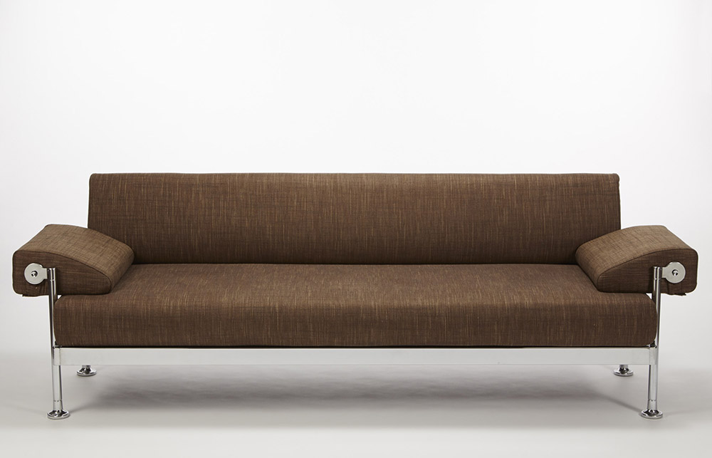 Giorgio Decursu ( 1927 - 2012) Raro divano modello "Taxi". Produzione BBB Bonacina, Meda, 1981. Metallo cromato e tessuto. Modello fuori produzione (cm 230x75x70) Bibliografia: Omnibook Two. Italian Industrial designers, a cura di Mario Vigiak, Magnus, Udine 1985; MD. Moebel interior design, vol. 29, Konradin-Verlag Robert Kohlhammer, 1983 p. 288; Nuovi modi di arredare, in "Ambientare", giugno 1984, p. 62-63; "Gap Casa", dicembre-gennaio 1984, p.46 Rare sofa, model "Taxi". Produced by BBB Bonacina, Meda, 1981. Chrome plated metal and fabric. Model out of production (cm 230x75x70) Bibliography: Omnibook Two. Italian Industrial designers, a cura di Mario Vigiak, Magnus, Udine 1985; MD. Moebel interior design, vol. 29, Konradin-Verlag Robert Kohlhammer, 1983 p. 288; Nuovi modi di arredare, in "Ambientare", giugno 1984, p. 62-63; "Gap Casa", dicembre-gennaio 1984, p.46