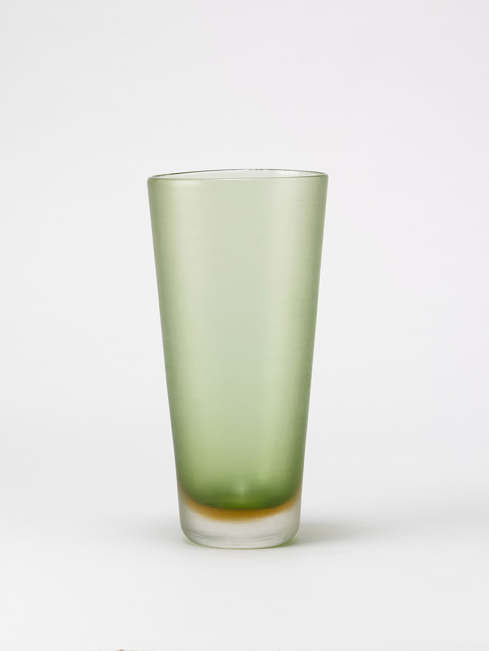 Paolo Venini (Milano 1895 -Venezia 1959) Vaso della serie "incisi". Venini, Murano 1955 ca. Firma all'acido "venini murano ITALIA". Corpo cilindrico svasato a sezione schiacciata, vetro composto "erba", inciso da sottili molature orizzontali sulla superficie esterna. Disegno n. 4810 del Catalogo Rosso Venini (h cm 30) Bibliografia: A. Venini Diaz de Santillana, Venini. Catalogo ragionato 1921-1986, Skira, Milano 2000, p. 282 Vase of the series "incisi". Venini, Murano, circa 1955. Signed "venini murano ITALIA". Drawing n. 4810 of the "Catalogo Rosso Venini" (h cm 30) Bibliography: A. Venini Diaz de Santillana, Venini. Catalogo ragionato 1921-1986, Skira, Milano 2000, p. 282