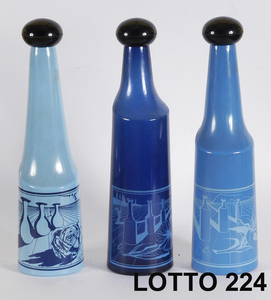 S. DALI' LOTTO COMPOSTO DA 03 BOTTIGLIE IN PASTA DI VETRO OPERA MULTIPLA H. 33