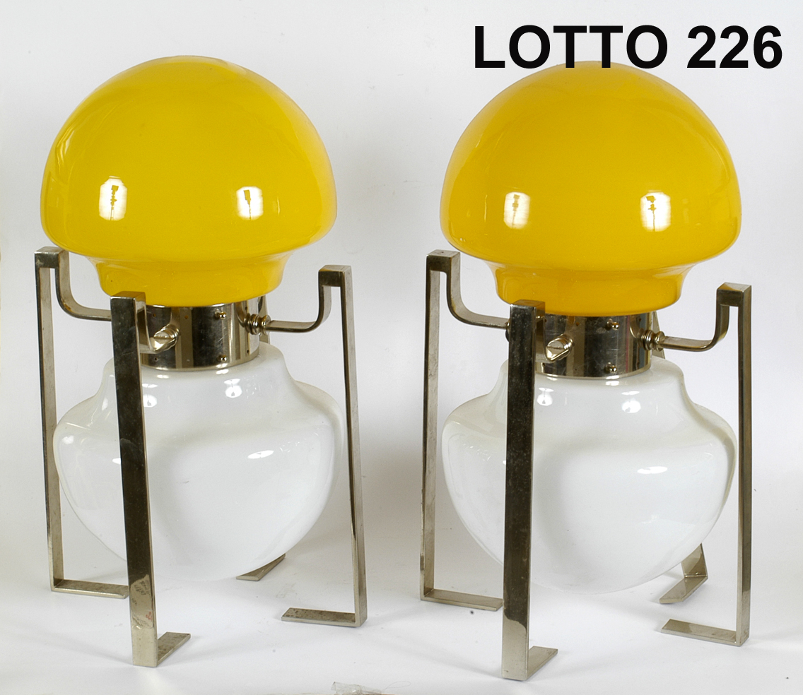 LOTTO COMPOSTO DA 02 LAMPADE IN VETRO BICOLORE ANNI 60 H. 40