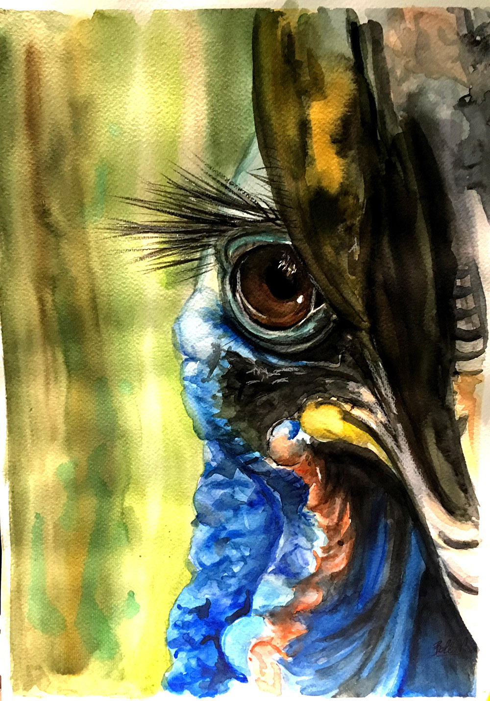 Valentina Bollo "Casuario" acquerello su carta dim. foglio cm 42x30 - Firma autografa dell'artista