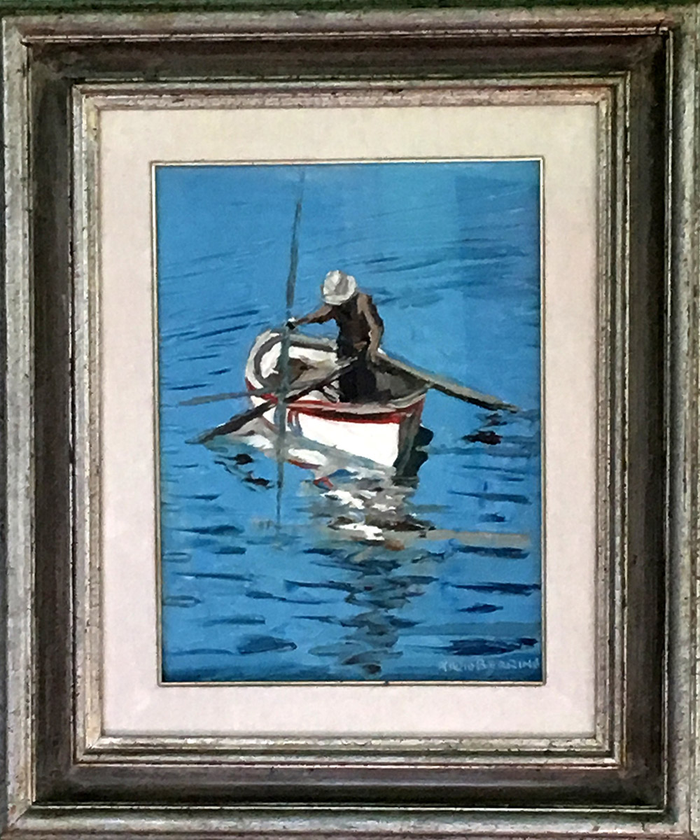 Mario Berrino "Pescatore" - olio su tela - cm. 40x30 - opera incorniciata - Firma in baso a dx
