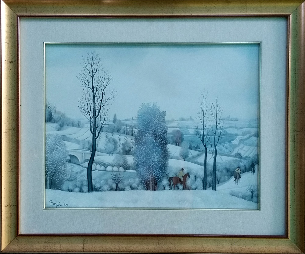 Francesco Maiolo "Paesaggio invernale" 1989 - Olio su tela - cm 45x35 - Firma in basso a sx