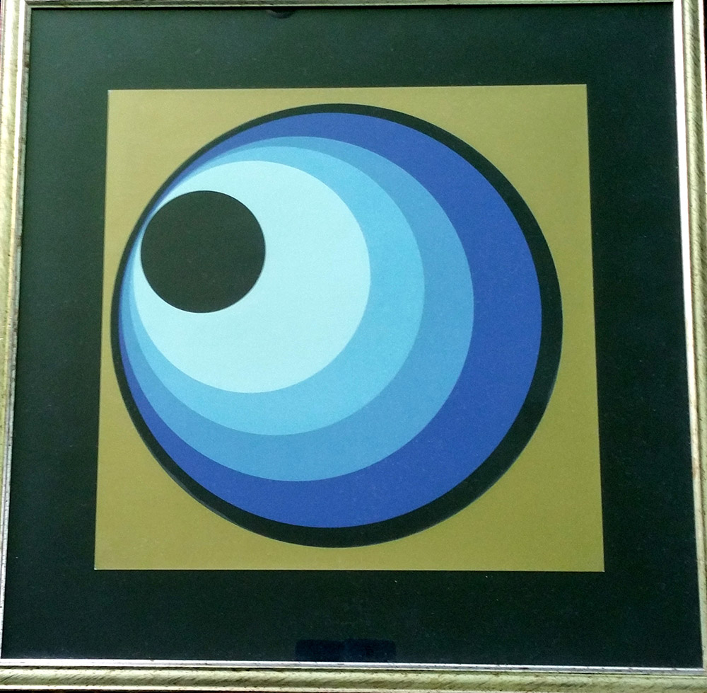 Nicolay Diulgheroff "Inscrizione circolare da progressione nero azzurra" 1972 - Tav. n. 6 - Serigrafia- Es. 74/150 - cm 42x42 - Cart. Ed. Carlo Belloli - Firma autografa dell'artista al retro - Prov. Galleria Viotti TO