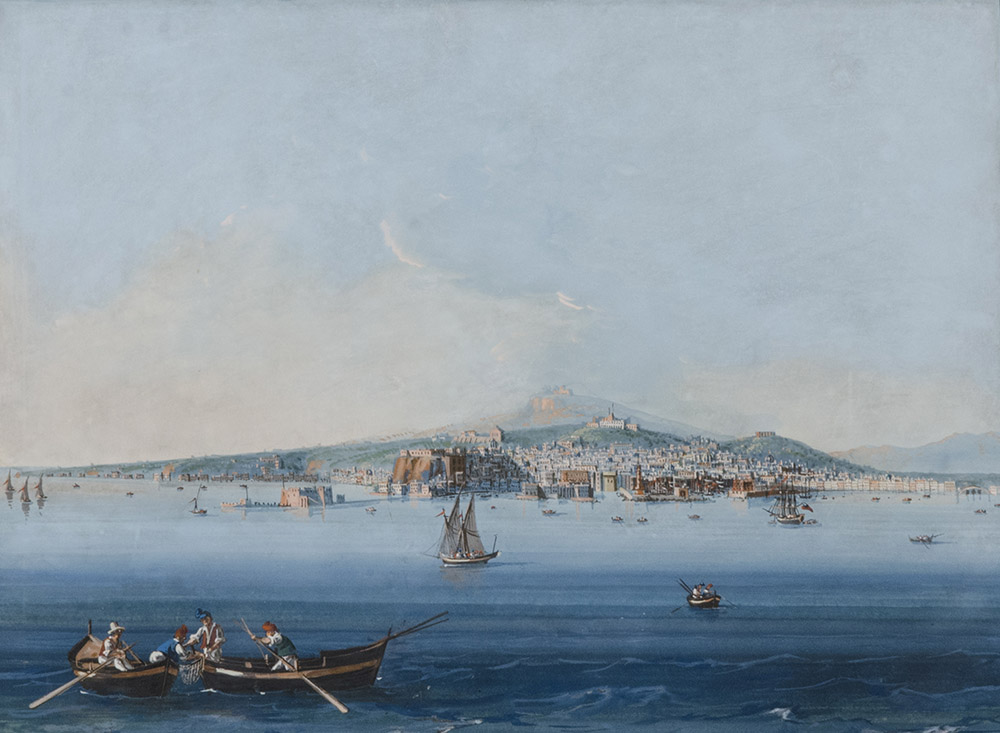 ANONIMO DELLA META’ DEL XIX SECOLO Veduta di Napoli dal mare Gouache su carta, 37 x 47,5 cm Iscritto in basso al centro: V. di Napoli da Mare HALF OF THE NINETEENTH CENTURY ANONYMOUS Naples view from the sea Gouache on paper, 37 x 47,5 cm Inscribed lower center: V. di Napoli da Mare