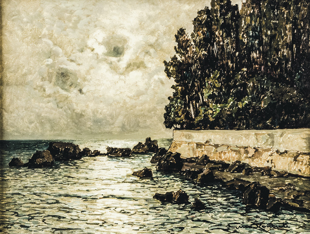 GINO ROMITI Livorno 1881-1967 Marina di Antignano Olio su tavoletta, 39,5 x 29,6 cm Firma in basso a destra: Gino Romiti Firma e luogo al retro: Antignano (Livorno) Prof. Gino Romiti GINO ROMITI Livorno 1881-1967 Antignano seascape Oil on board, 39,5 x 29,6 cm Signed lower right: Gino Romiti Signed on the back: Antignano (Livorno) Prof. Gino Romiti
