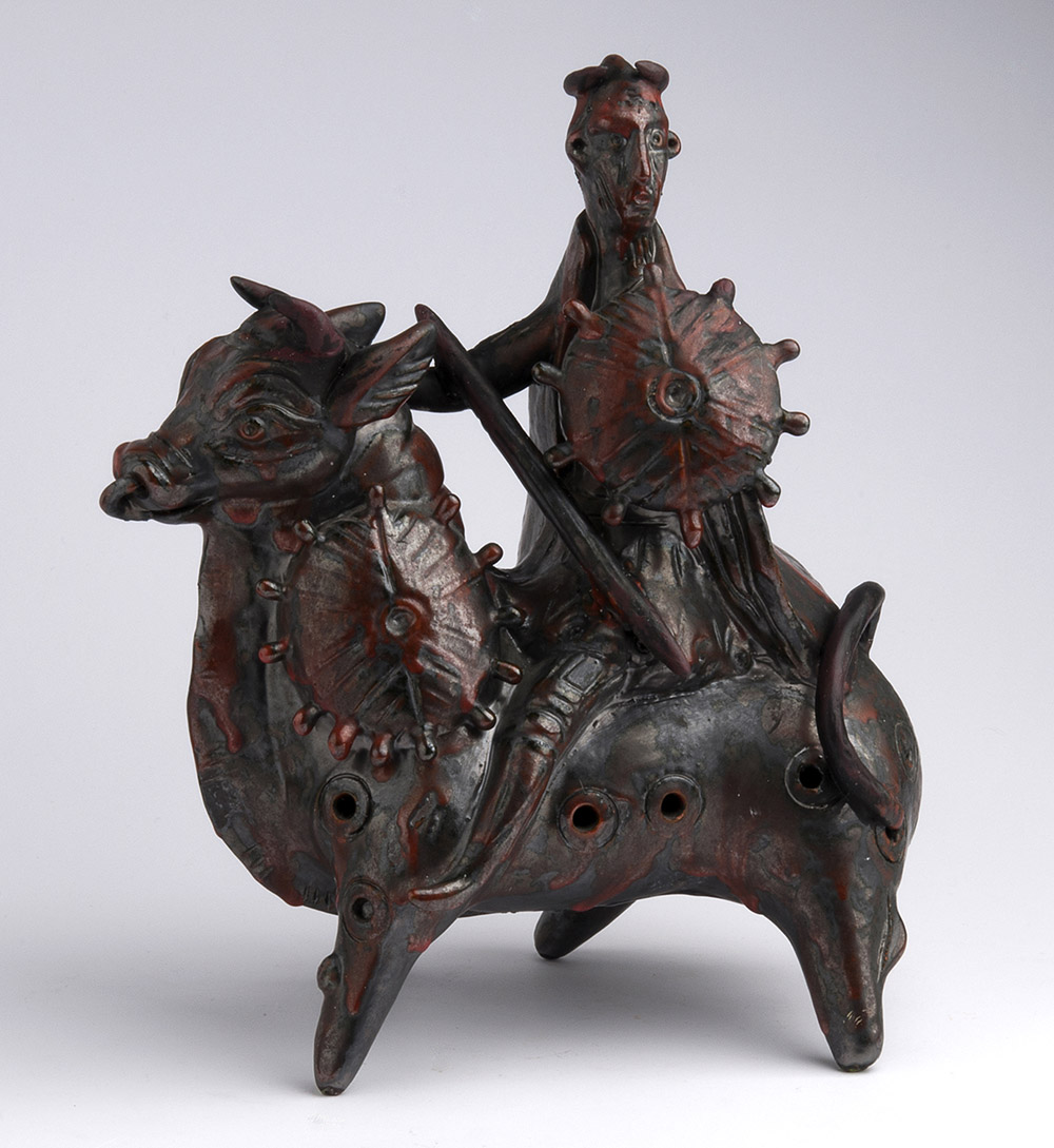 GIUSEPPE SILECCHIA Porto Azzurro 1927 - Sassari 2015 Cavaliere, Anni’ 60 Scultura in ceramica dipinta, 26 x 22 x 13 cm circa Firma e luogo incisi sotto la base: G. Silecchia - Sassari - Italy GIUSEPPE SILECCHIA Porto Azzurro 1927 - Sassari 2015 Knight, 60’s Painted ceramic sculpture, 26 x 22 x 13 cm ca Signed and inscribed under the base: G. Silecchia - Sassari - Italy