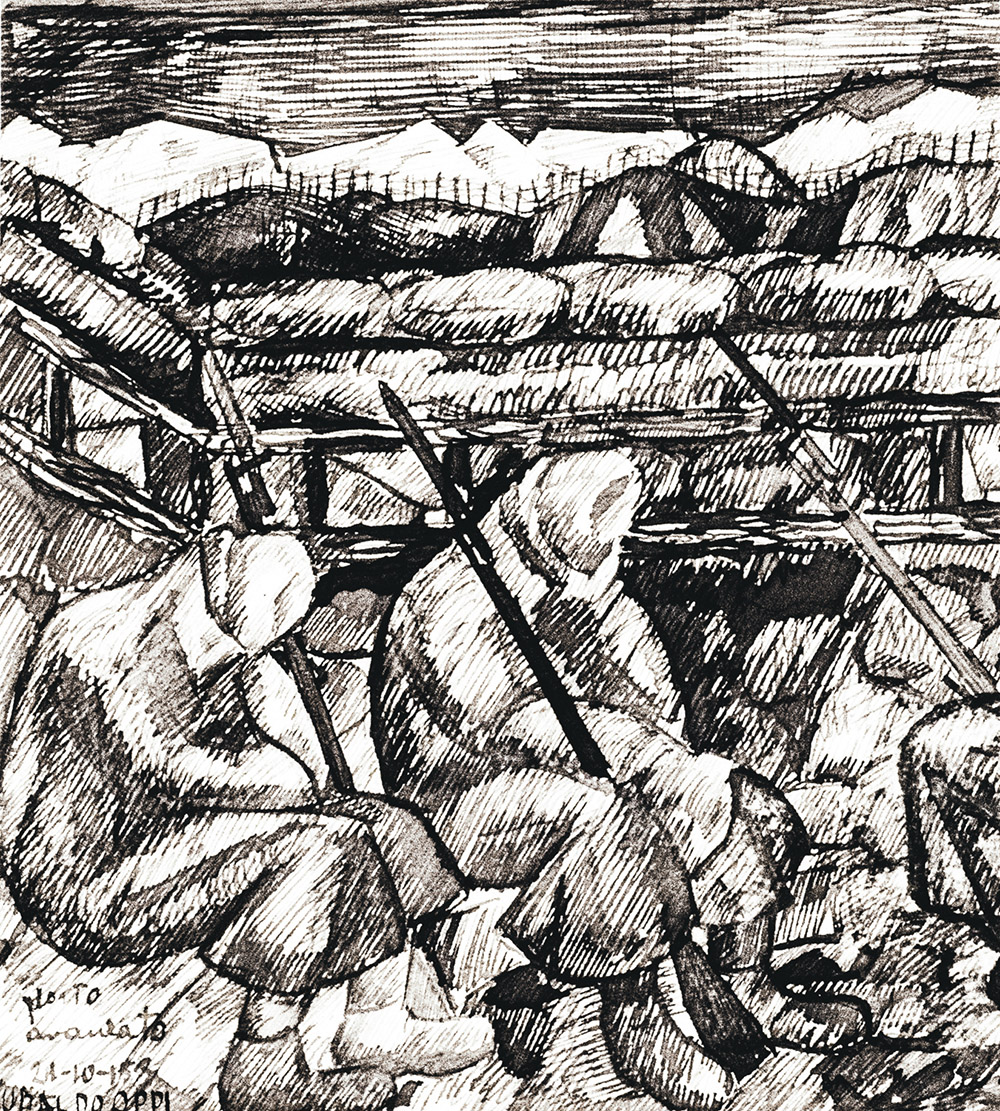 UBALDO OPPI Bologna 1889 - Vicenza 1942 Posto avanzato, 1915 China su carta,...