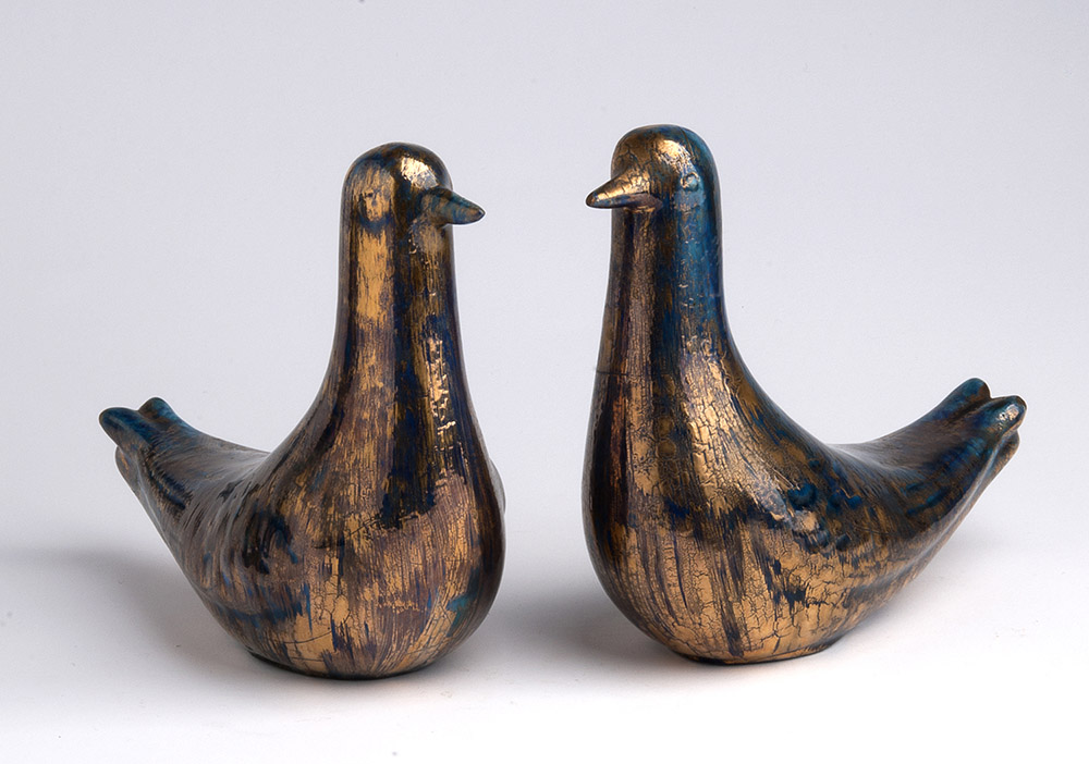MARCELLO FANTONI Firenze 1915 - 2011 Colombe, Anni ‘50/‘60 Coppia di sculture in ceramica dipinta, h 14 cm Firma sotto la base: Fantoni - Italy MARCELLO FANTONI Florence 1915 - 2011 Doves, 50’s/60’s Painted ceramic sculptures, h 14 cm Signed under the base: Fantoni - Italy
