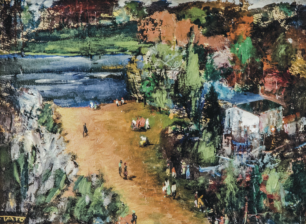 TATO Bologna 1896 – Roma 1974 Paesaggio Olio su tavoletta, 20 x 26,5 cm circa Firma in basso a sinistra: TATO Parere verbale positivo dell’Archivio Tato a cura del generale Salvatore Ventura Autentica a richiesta TATO Bologna 1896 – Rome 1974 Landscape Oil on board, 20 x 26,5 cm circa Signed lower left: TATO Tato Archive verbal positive opinion by General Salvatore Ventura Certification on request