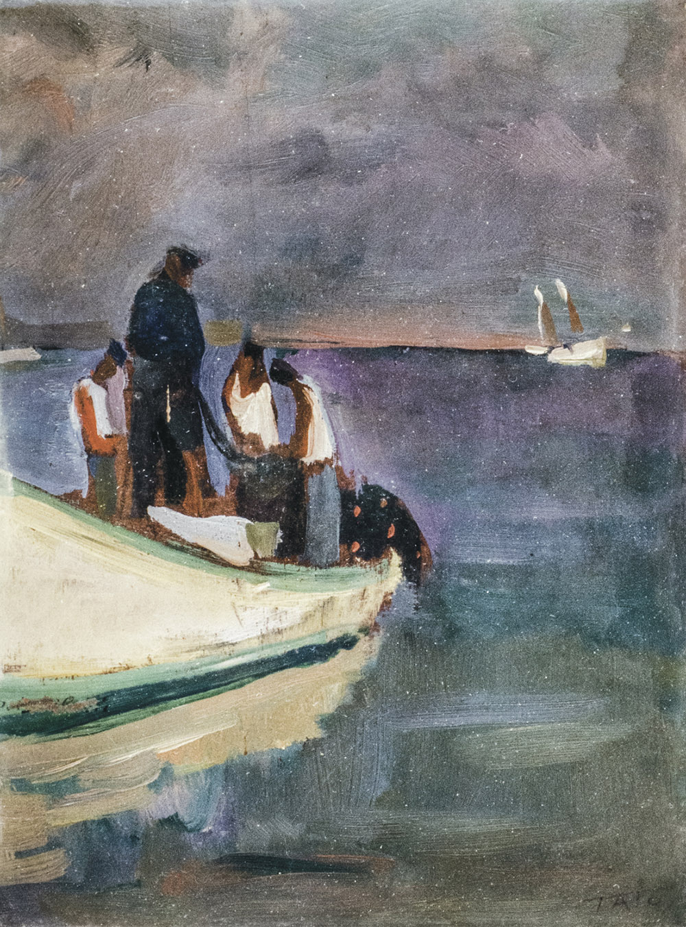 TATO Bologna 1896 - Roma 1974 Marina con pescatori Olio su tavoletta, 24 x 18 cm circa Firma in basso a destra: TATO Parere verbale positivo dell’Archivio Tato a cura del generale Salvatore Ventura Autentica a richiesta TATO Bologna 1896 - Rome 1974 Seascape Oil on board, 24 x 18 cm ca. Signed lower right: TATO Tato Archive verbal positive opinion by General Salvatore Ventura Certification on request