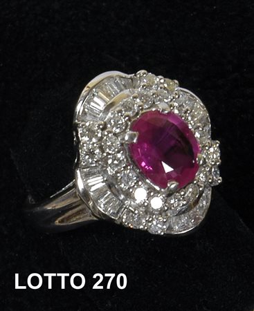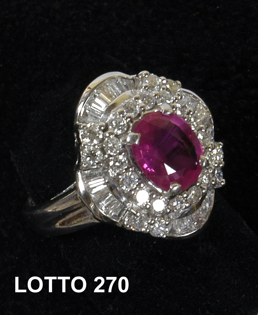 ANELLO CON RUBINO E BRILLANTI GRAMMI TOT. 9,90 ORO 750 % GRAMMI 9,30 CA. RUBINO NON TRATTATO CARATI 1,88 BRILLANTI CARATI 1,35