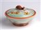 F.A.C.I Civita Castellana Ciotola con coperchio di gusto futurista decorata da figure di rondine, Anni ‘30 Ceramica policroma con decoro all’aerografo, 11,5 x 18,5 cm Reca sotto la base il marchio FACI CC - 673 F.A.C.I Civita Castellana Futurist style bowl with swallows decoration on lid, 30’s Airbrush decorated polychrome ceramic, 11,5 x 18,5 cm Inscribed under the base: FACI CC - 673