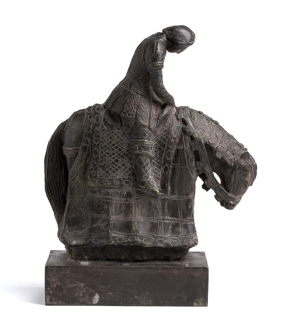 NORBERTO PROIETTI Spello 1927 – 2009 Il Ritorno dalla battaglia, 2000 Scultura in bronzo, 24 x 26 x 10 cm Firma incisa lateralmente: Norberto Numero d’esemplare inciso sulla base al retro: 86/900 Autentica su foto dell’Artista NORBERTO PROIETTI Spello 1927 – 2009 Comeback from battle, 2000 Bronze sculpture, 24 x 26 x 10 cm Signed on the side: Norberto Example number on the base: 86/900 Photo-certificate by the Artist