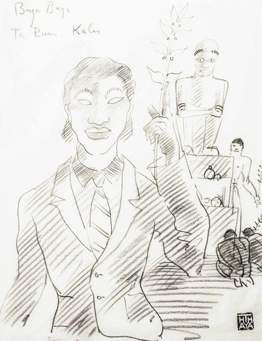 THAYAHT (Ernesto Michahelles) Firenze 1893 – Marina di Pietrasanta (LU) 1959 Baya Baya, Anni ‘30/’40 Pastello nero su carta, 29,5 x 23 cm Timbro THAYAHT in basso a destra Scritta in alto a sinistra: Baya Baya Ta Rumi. Kalis THAYAHT (Ernesto Michahelles) Florence 1893 – Marina di Pietrasanta (LU) 1959 Baya Baya, 30s/40s Black pastel on paper, 29,5 x 23 cm Stamp THAYAHT lower right Inscribed upper left: Baya Baya Ta Rumi. Kalis