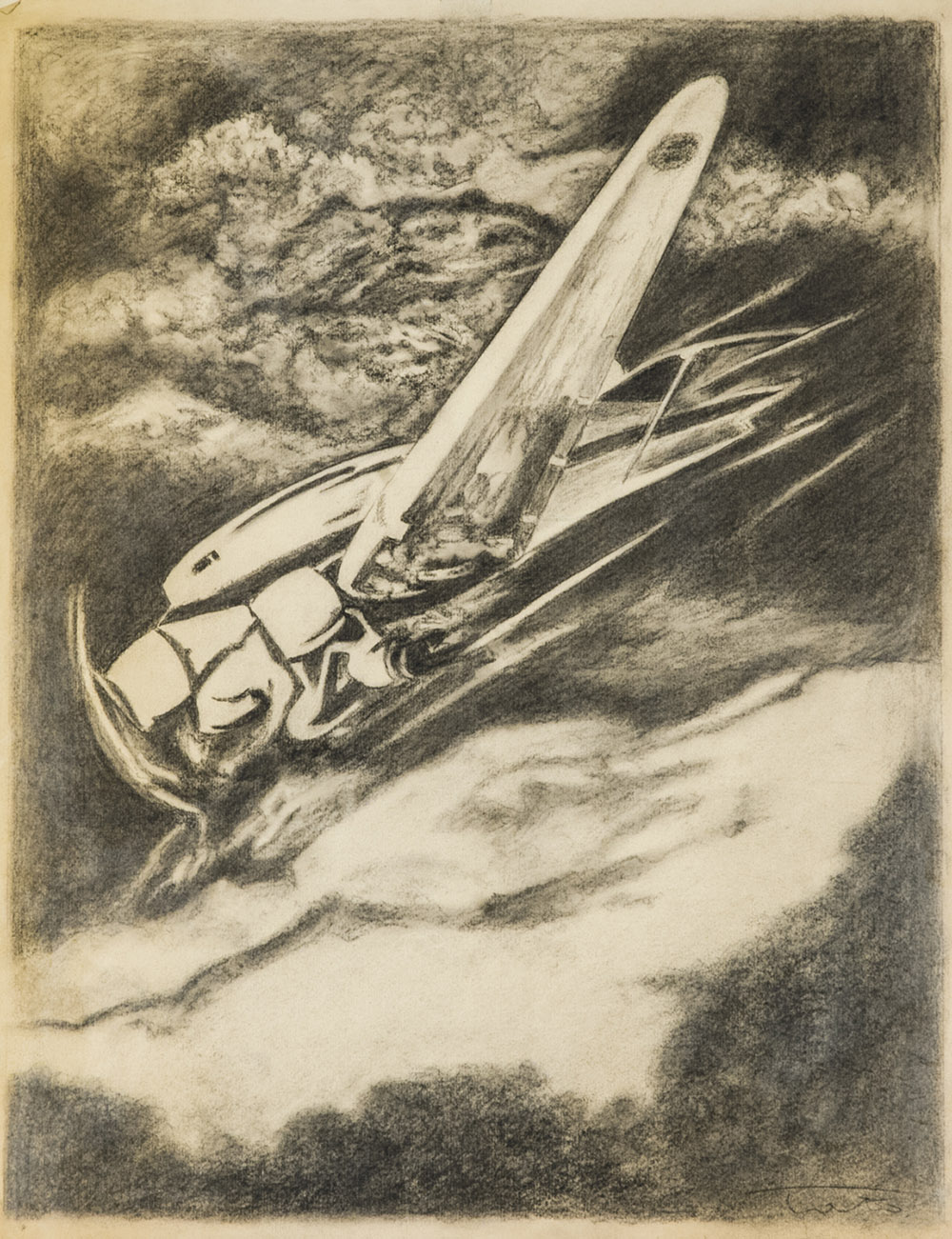 TATO Bologna 1896 - Roma 1974 Savoia Marchetti SM81 a quota 6000 (bozzetto preparatorio del dipinto), 1940 circa Carboncino su cartoncino, cm. 60 x 46,5 Firma in basso a destra: Tato Etichetta al retro “Bombardiere in picchiata aeropittura di Tato” con timbro dell’Ufficio Storico Biografico del Popolo d’Italia Autentica su foto dell’Archivio Tato, a cura del generale Salvatore Ventura, Roma 16 aprile 2016 TATO Bologna 1896 - Rome 1974 Savoia Marchetti SM81 a quota 6000 (sketch for painting), 1940 ca. Black charcoal on cardboard, 60 x 46,5 cm Signed lower right: Tato Label on the back: “Bombardiere in picchiata aeropittura di Tato” with Ufficio Storico Biografico del Popolo d’Italia stamp Photo-certificate of authenticity from Tato Archives, by the General Salvatore Ventura, Rome, April 16th, 2016