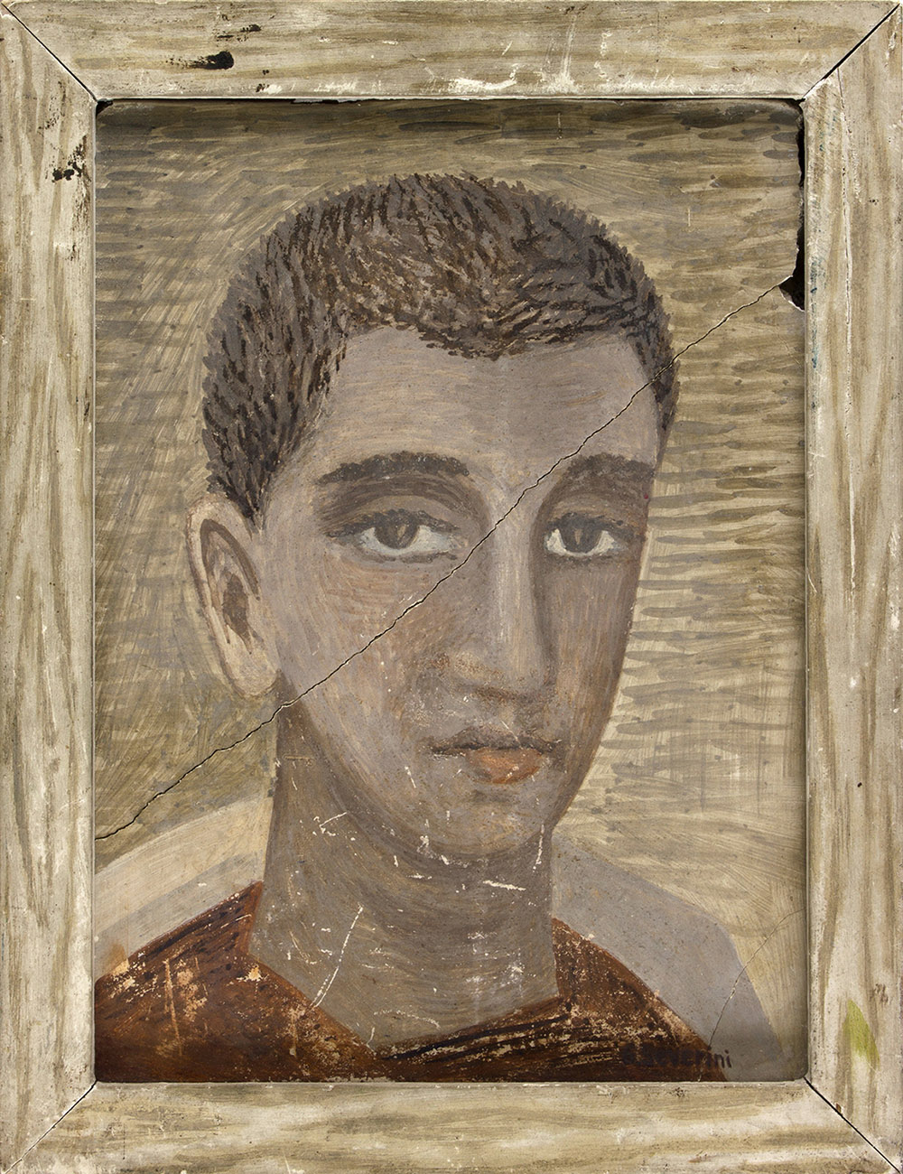 GINO SEVERINI Cortona 1883 - Parigi 1966 Testa di Apostolo, 1927 circa Dipinto ad affresco su intonato, 38 x 26 cm Firma in basso a destra Condition report Difetti alla pittura e rotture Autentica su foto dell'Artista redatta nel suo studio di Parigi il 27.4.1965 Autentica su foto Archivio Severini nella persona di Romana Severini Brunori Opera eseguita durante i suoi lavori in Svizzera GINO SEVERINI Cortona 1883 - Paris 1966 Apostle head, 1927 ca. Fresco, 38 x 26 cm Signed lower right Condition report Painting lacks Photo-certificate of authenticity made in the artist’s studio in Paris, 27.4.1965 Photo-certificate of authenticity Severini Archive by Romana Severini Brunori Work made during his period in Switzerland