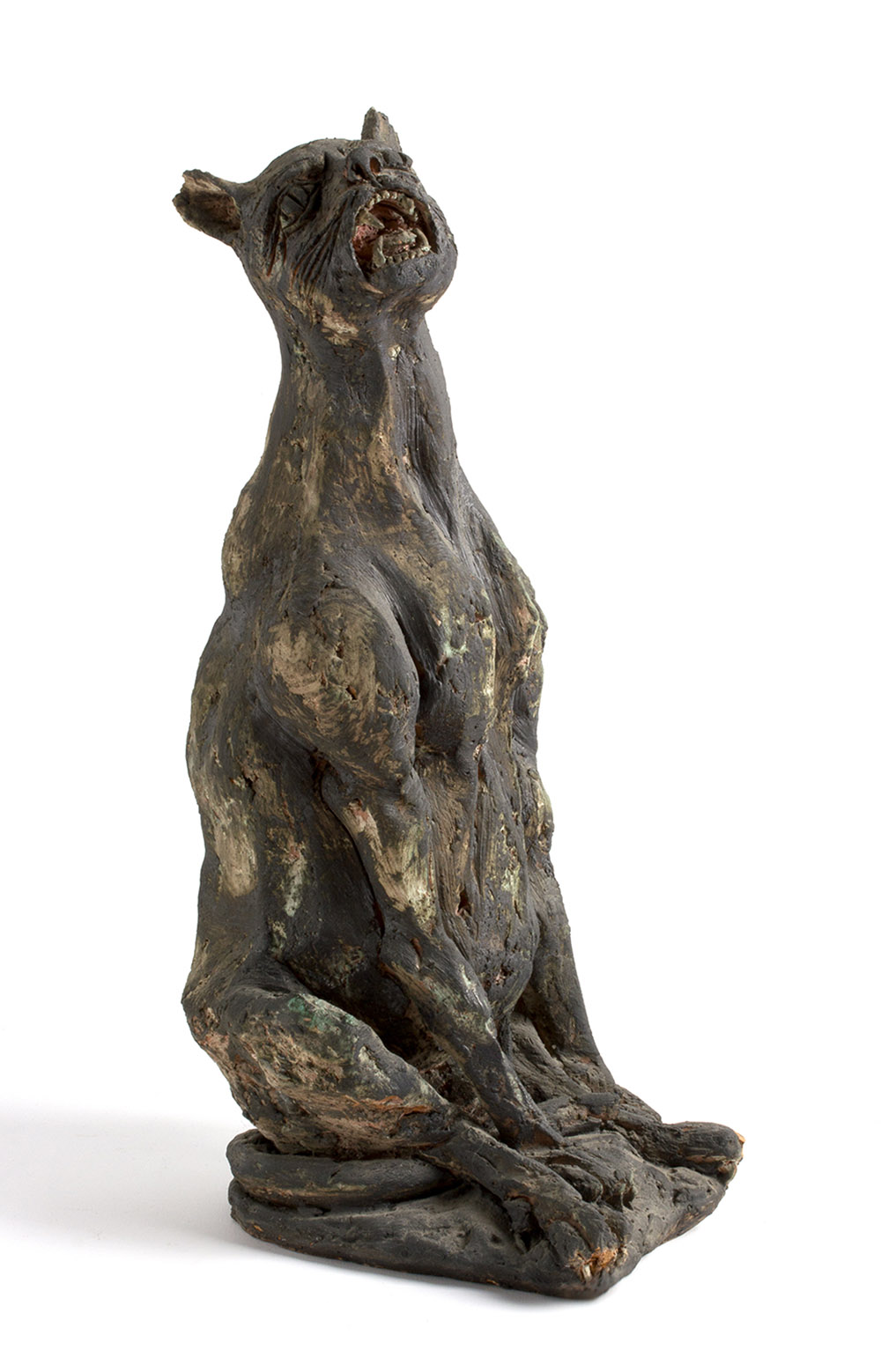 AGENORE FABBRI Pistoia 1911 - Savona 1998 Gatto Feroce, 1949 Scultura in terracotta, h 51 cm Firma incisa al retro sulla base: A. Fabbri Firma incisa sotto la base: A. Fabbri Un esemplare analogo è pubblicato in Agenore Fabbri, Mazzotta, 2002, p. 192, fig. 139 AGENORE FABBRI Pistoia 1911 - Savona 1998 Wild cat, 1949 Terracotta sculpure, h 51 cm Engraved signature on the back: A. Fabbri Engraved signature under the base: A. Fabbri A similar example pubblished in Agenore Fabbri, Mazzotta, 2002, p. 192, fig. 139