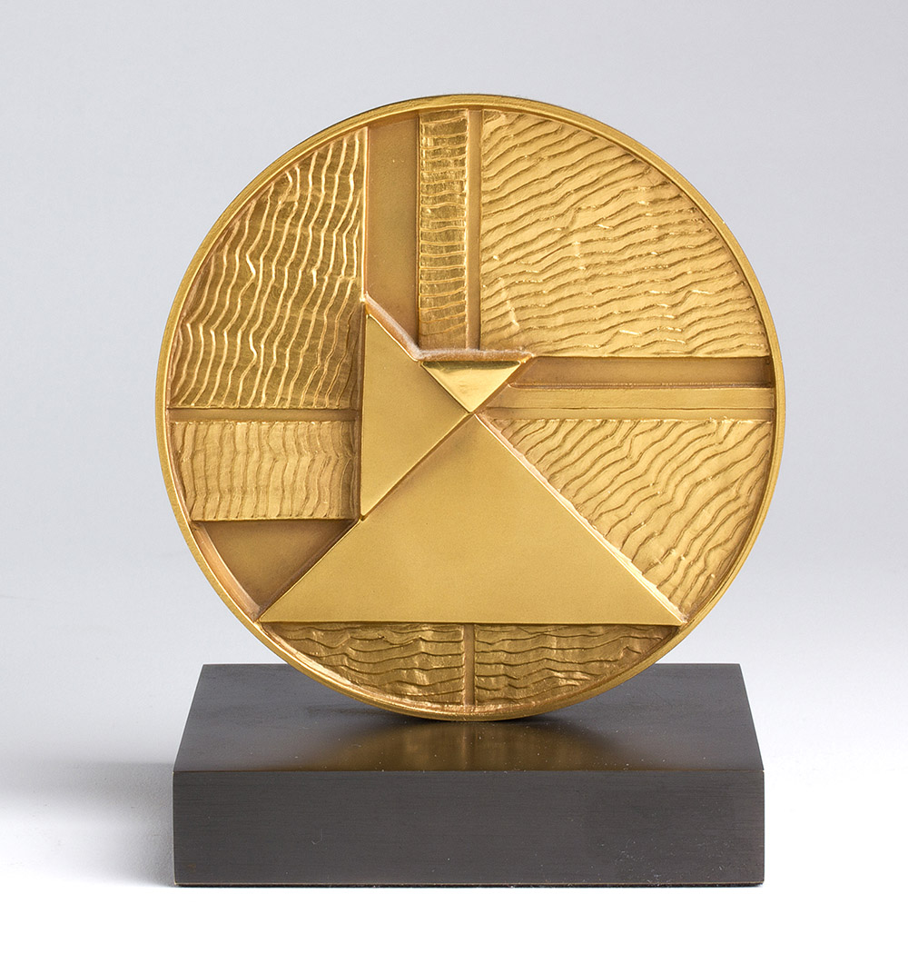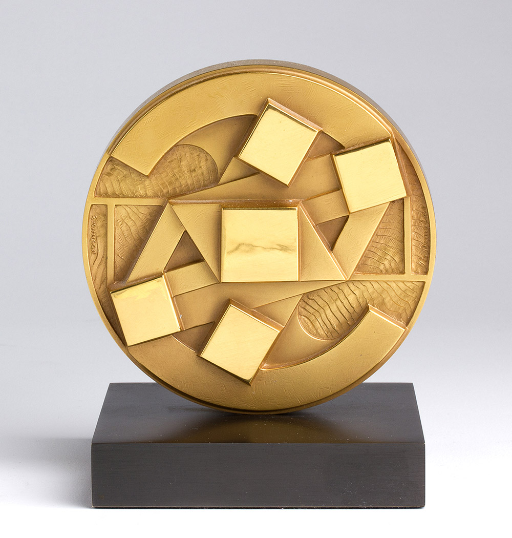 GIO’ POMODORO Orciano di Pesaro 1930 - Milano 2002 Disco, inizi Anni ‘90 Scultura in bronzo dorato, d 11 cm; h 13 cm (complessivi) Firma incisa a destra: Gio’ Pomodoro Iscritto a sinistra: S. Johnson Esemplare non numerato Pubblicazioni Catalogo della mostra “Gio’ Pomodoro e Johnson”, Museo Archeologico, Milano 1992 GIO’ POMODORO Orciano di Pesaro 1930 - Milan 2002 Disk, beginning of the 90’s Golden bronze sculpture, d. 11 cm; h. 13 cm Signed on the right side: Gio’ Pomodoro Inscribed on thye left side: S. Johnson Example not numbered Bibliography Exhibition catalogue “Gio’ Pomodoro e Johnson”, Archeological Museum, Milan 1992