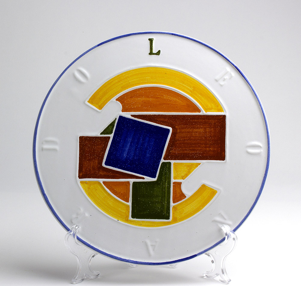 GIO’ POMODORO Orciano di Pesaro 1930 - Milano 2002 Piatto con decoro astratto, Anni ‘80 Ceramica dipinta, d 28 cm Firma al retro e numero d’esemplare: Gio’ Pomodoro 1384/1600 Esemplare realizzato dall’Artista per Alitalia in collaborazione con la Cooperativa Artigiani Ceramisti Faentini di Faenza GIO’ POMODORO Orciano di Pesaro 1930 - Milan 2002 Plate with abstract motifs, 80’s Painted ceramic d 28 cm Signed and numbered on the back side: Gio’ Pomodoro 1384/1600 Plate made by the Artist for Alitalia in collaboration with Cooperativa Artigiani Ceramisti Faentini di Faenza