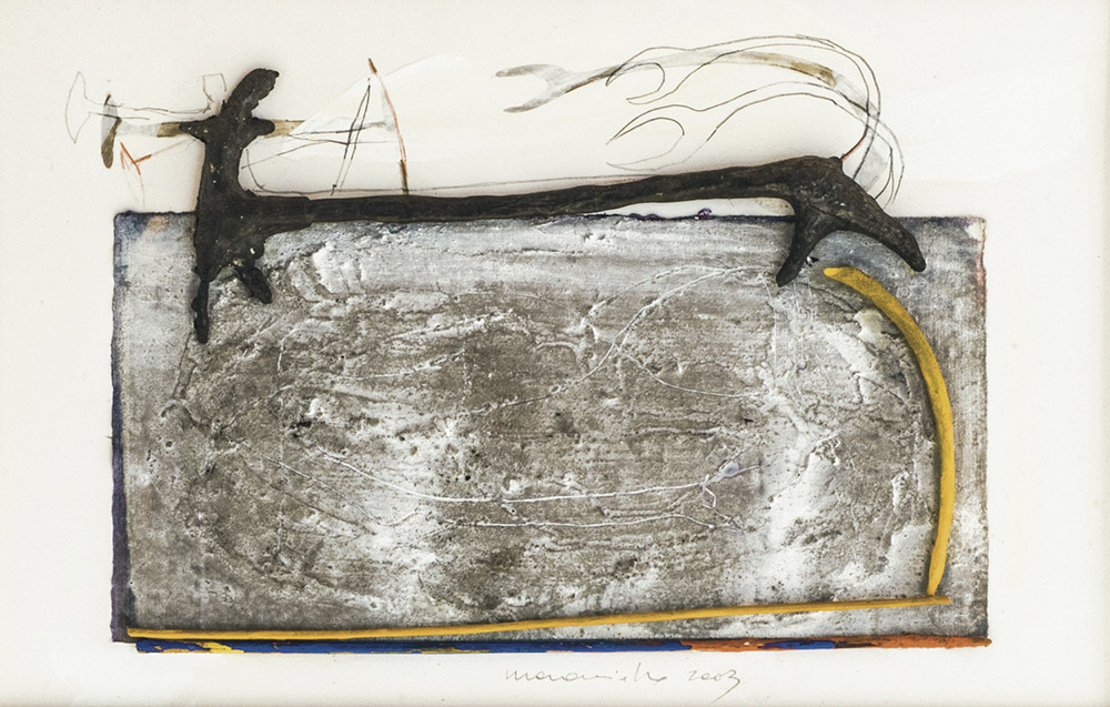 GIUSEPPE MARANIELLO Napoli, 1945 Senza titolo, 2003 Tecnica mista su cartoncino, 21 x 33 cm Firma e data in basso al centro: Maraniello 2003 GIUSEPPE MARANIELLO Naples, 1945 Untitled, 2003 Mixed media on cardboard, 21 x 33 cm Signed and dated lower center: Maraniello 2003