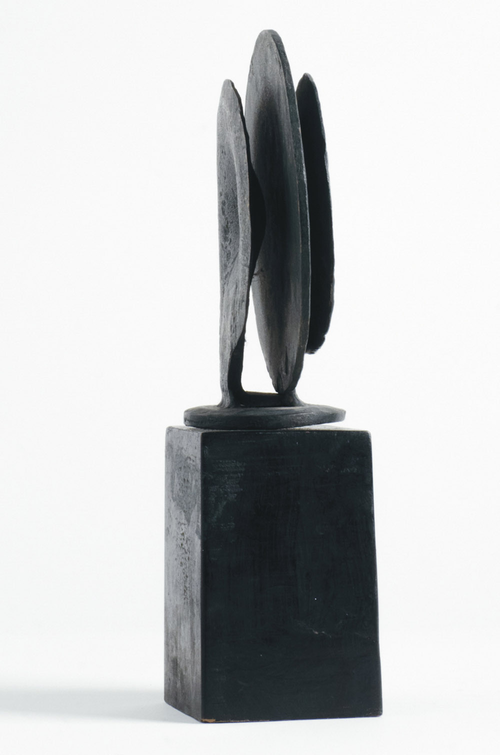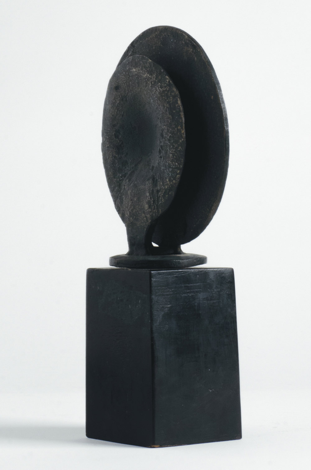 ENRICO ACCATINO Genova 1920 - Roma 2007 Presenza, 1967 Ferro forgiato a mano, h 18,5 cm (h 31 cm compresa la base in legno) Firma, data e numero d’esemplare sotto la base della scultura: Accatino 67, 2/5 Esposizioni La circolarità dello Spirito, Palazzo Rondanini alla Rotonda, 15 ottobre - 16 novembre 1991, Roma Autentica Archivio Enrico Accatino, Roma 15 marzo 2016 ENRICO ACCATINO Genoa 1920 - Rome 2007 Presence, 1967 Hand-forged iron, h. 18,5 cm (h. 31 cm with the base) Signed, dated and number under the base of the sculpture: Accatino 67, 2/5 Exhibited La circolarità dello Spirito, Palazzo Rondanini alla Rotonda, October 15th - November 16th 1991, Rome Certificate of autenticity by the Enrico Accatino Archive, Rome March 15th 2016