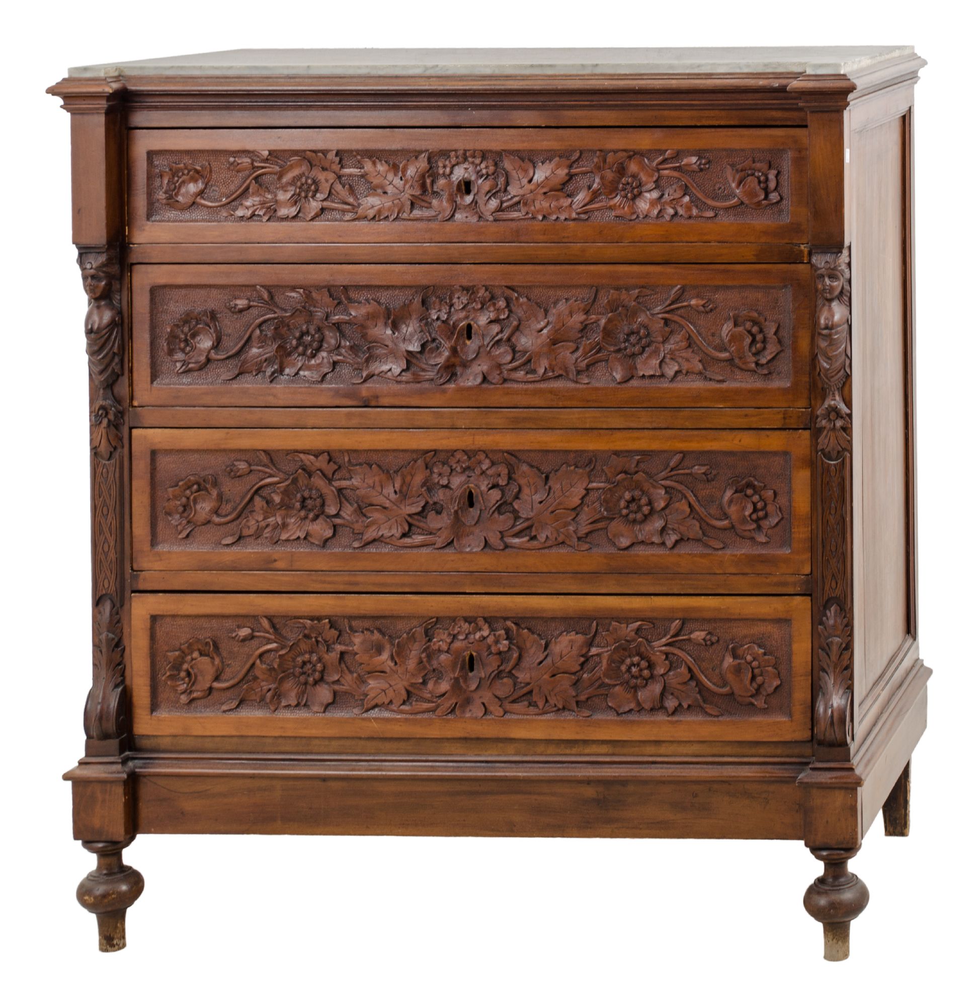 CASSETTONE a quattro cassetti in noce riccamente intagliato. Sicilia II meta'...