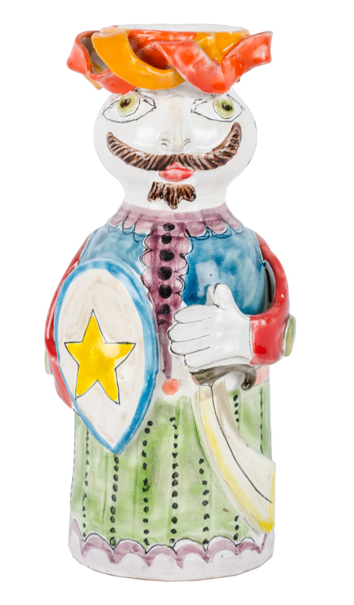 DE SIMONE VASO in ceramica dipinta raffigurante "personaggio". XX secolo Misure: h cm 32