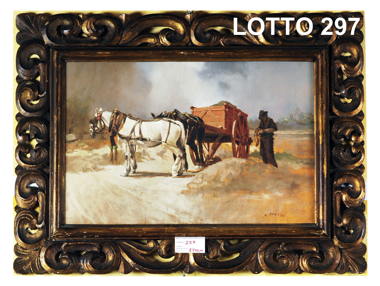 Lot 297 | ALFREDO SORESSI (1897 – 1982) DIPINTO OLIO SU TAVOLA RAFF. CAVALLI AL TRAINO...