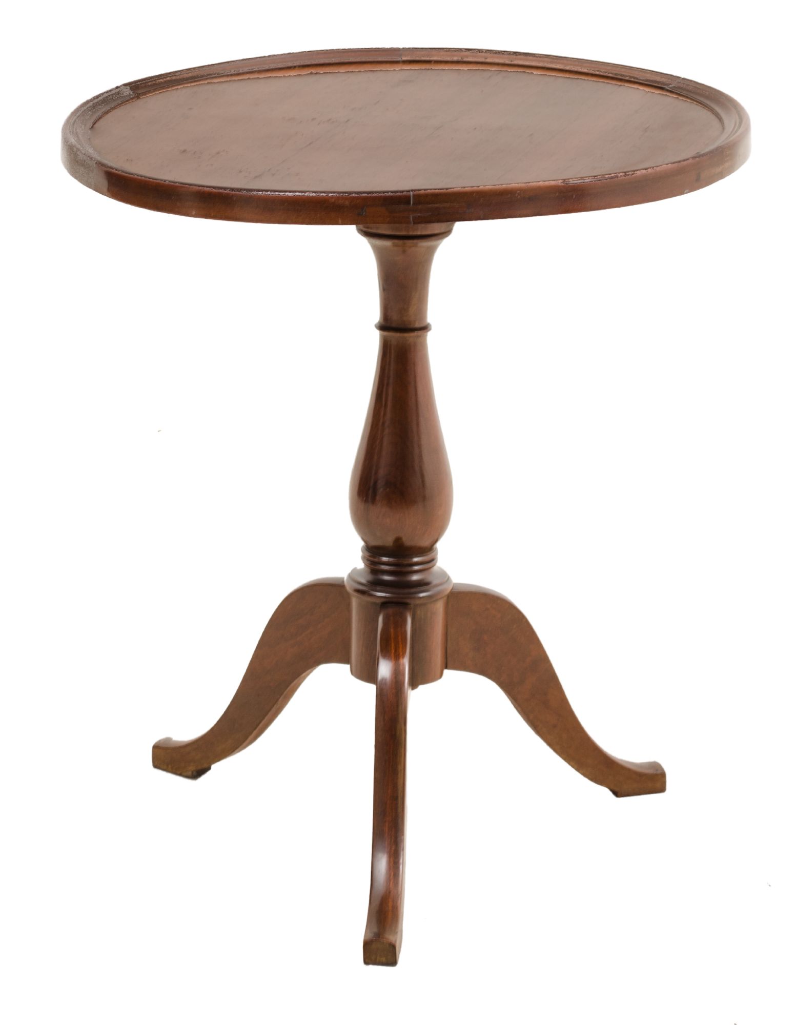 TAVOLINO tondo in mogano, fusto a colonna e piede tripode. Sicilia primi '900...