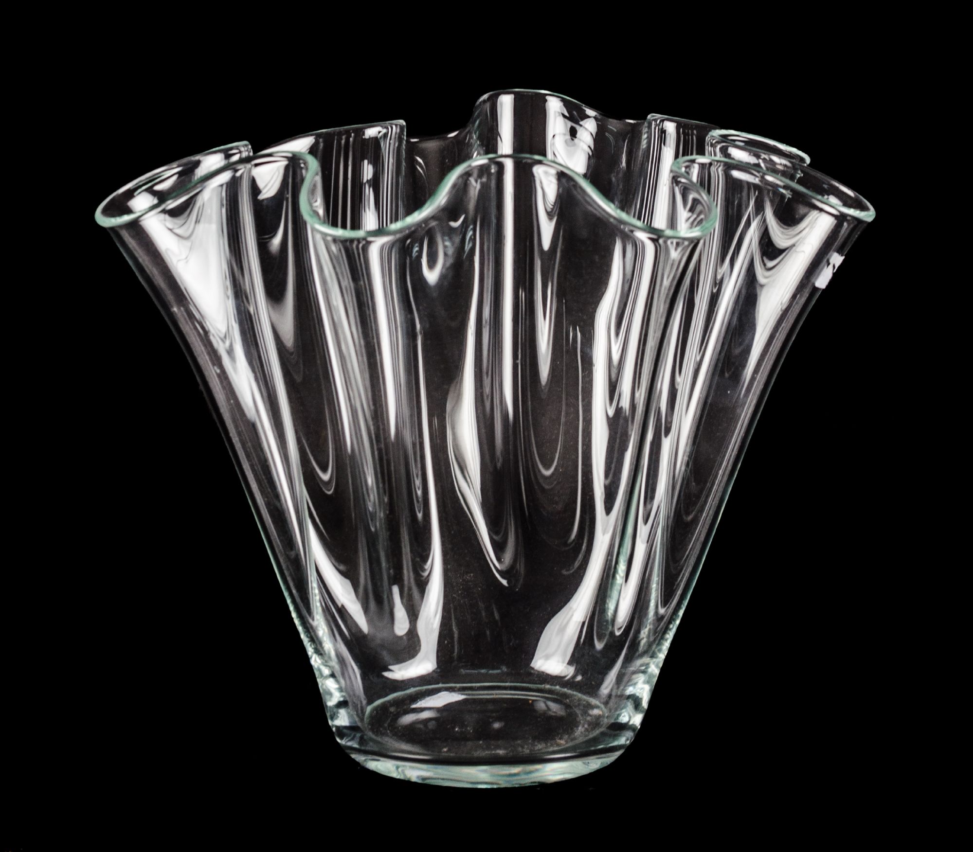 CENTROTAVOLA smerlato in vetro. XX secolo Misure: diametro cm 37 x h 30