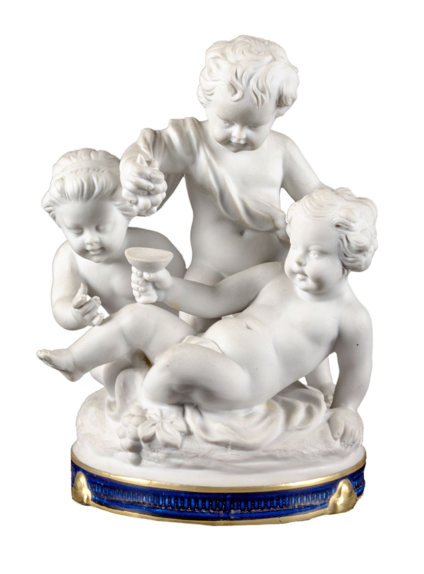 GRUPPO in biscuit Capodimonte raffigurante "putti". XX secolo Misure: h cm 16