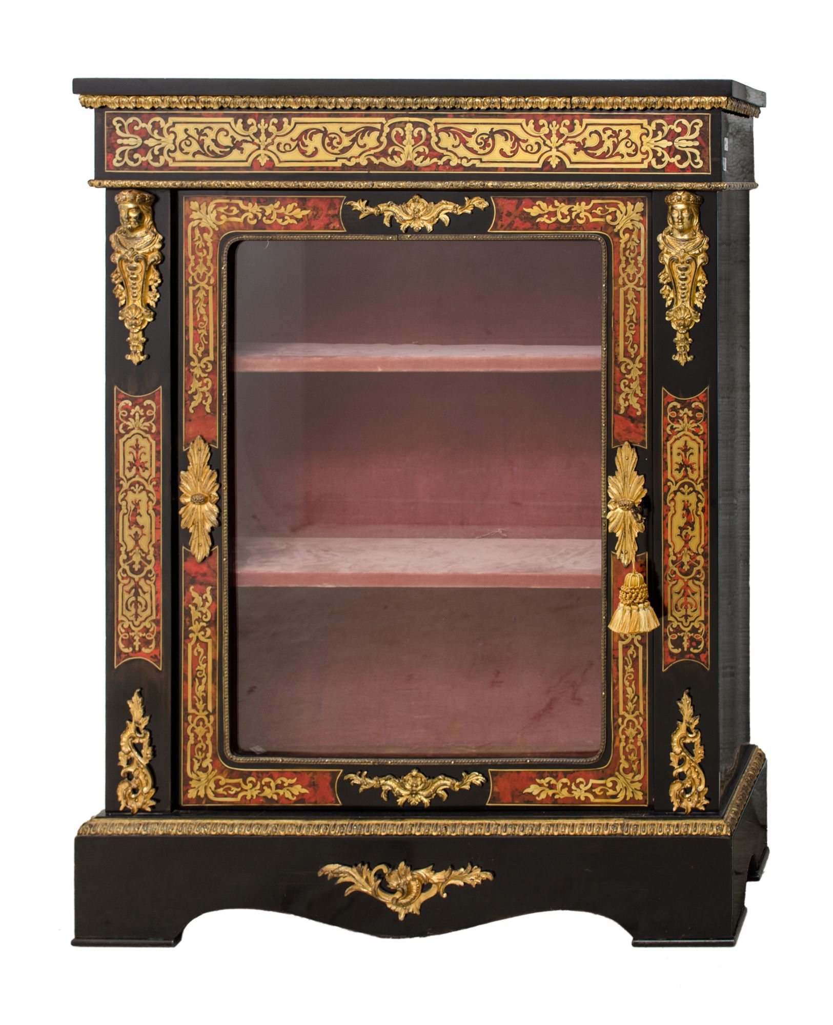 VETRINETTA Boulle ad un'anta in legno ebanizzato con tarsie in tartaruga e rame, guarnizioni in bronzo. Francia XIX secolo Misure: cm 84,5 x 31,5 x h 111