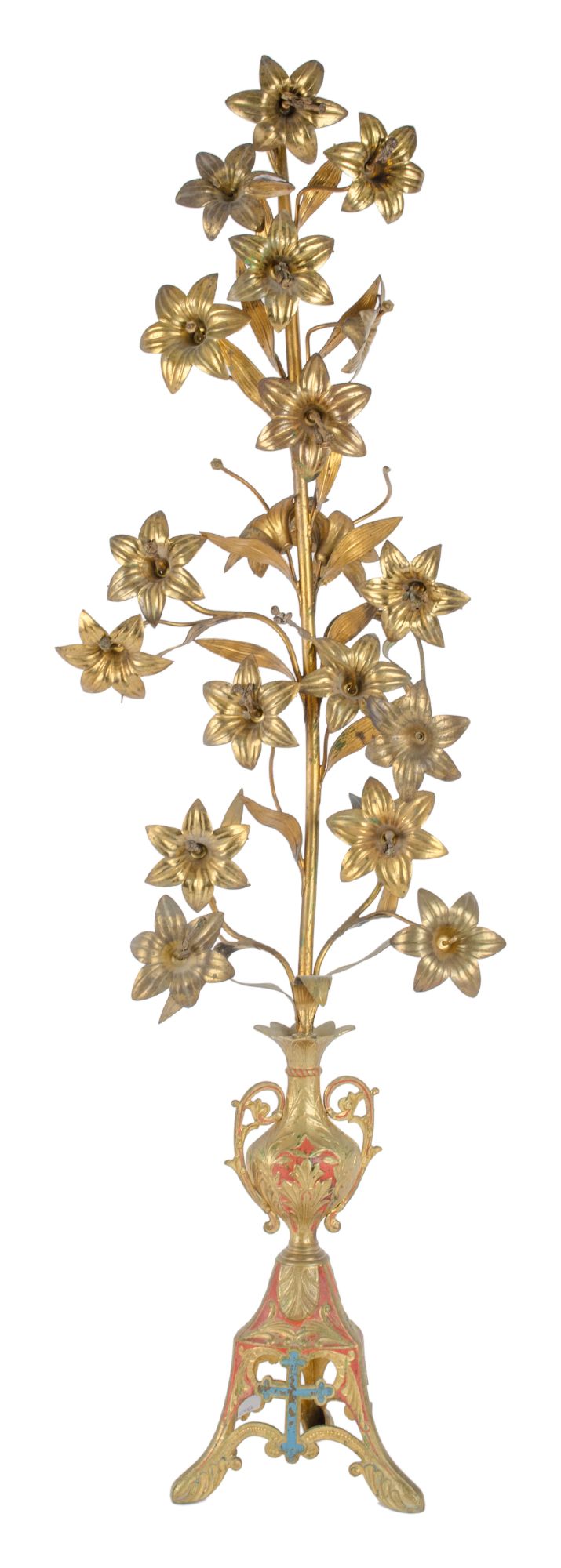 ORNAMENTO floreale da altare in ottone. XX secolo Misure: h cm 100