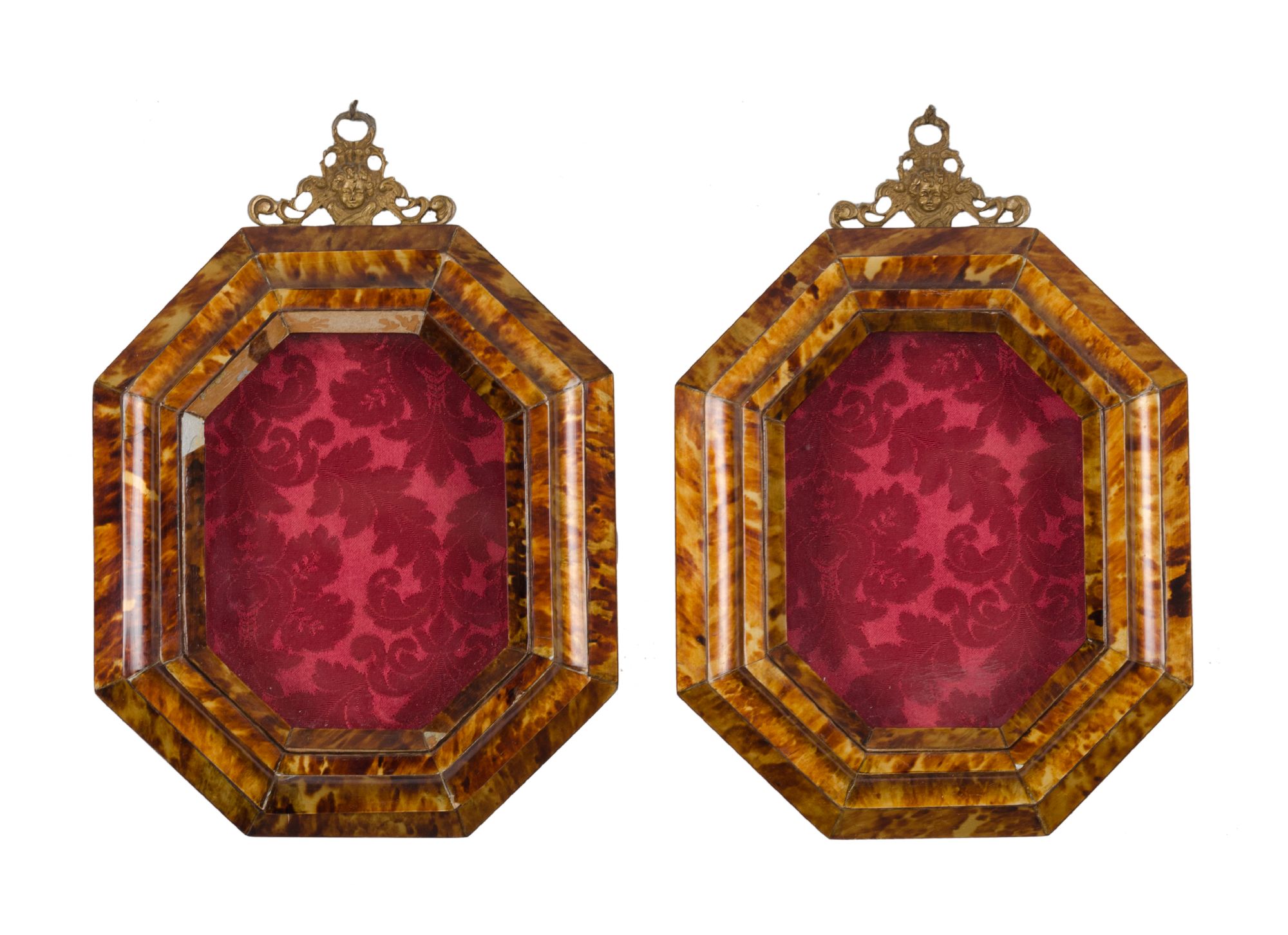 COPPIA CORNICI ottagonali in tartaruga (cm 18 x 14). XX secolo Misure: cm 25 x 21