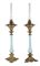 COPPIA LUMI con fusto in opaline, base e collo in bronzo e contenitori porta...