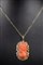 PENDENTE in oro giallo 18 Kt, corallo inciso raffigurante "profilo femminile" con catena in oro giallo 18 Kt. (g. 10). Sicilia XX secolo