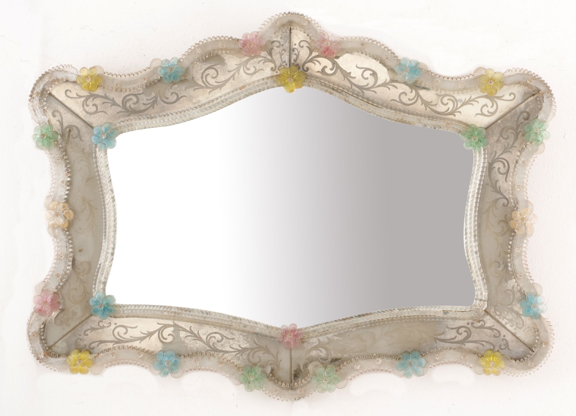 SPECCHIERA di forma centinata in vetro di Murano. Meta' '900 Misure: cm 93 x 69